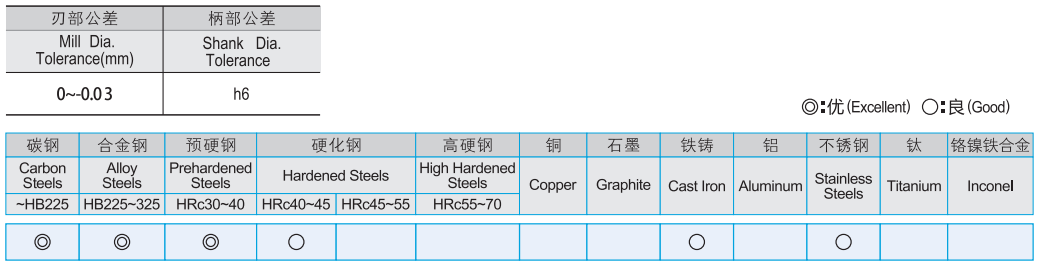 · 设计用于加工碳钢,工具钢,钛合金,不锈钢等多种用途的钢 · 耐磨性 · 4刃可得到较好的表面粗糙度 · 适应于高速加工,湿式和干式切削条件