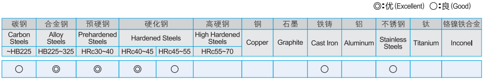 · 为加工工具钢,合金钢,模具其他硬质材料设计 · 提高表面光洁度 · 提高进给速度