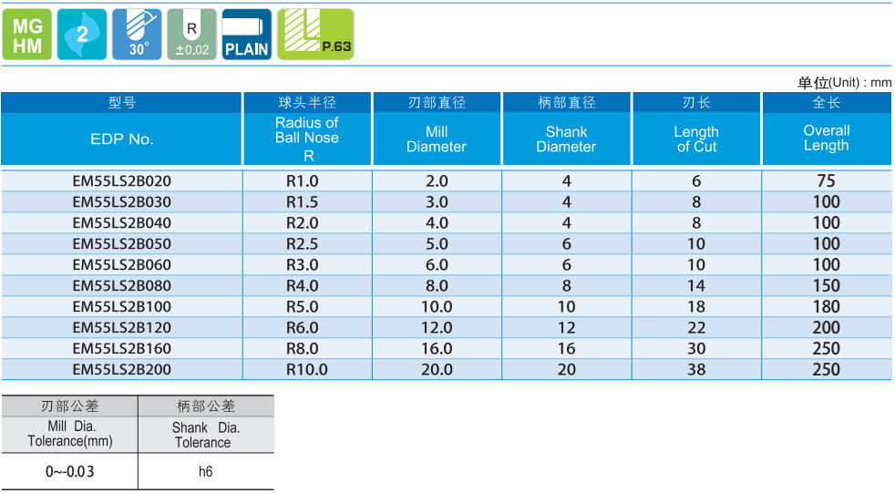 · 全长比E5RL2B,E5LL2B系列长,适于深处区域加工
