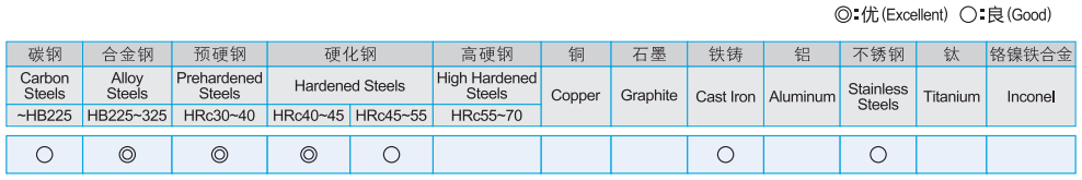 · 为加工工具钢,合金钢,模具其他硬材料设计 · 提高表面光洁度 · 提高进给速度