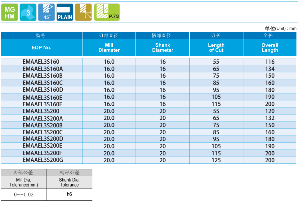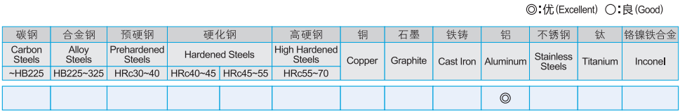 · 适用铝及合金材质加工   · 其他设计使振动较小化   · 镜面处理的切削刃可保证加工面的粗糙度   · 刃部直径公差精密化