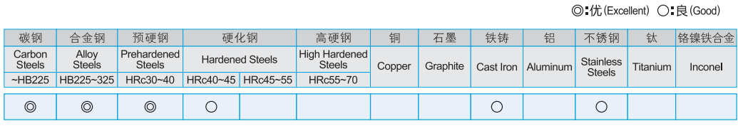 · 设计用于加工碳钢,工具钢,钛合金,不锈钢等多种用途的钢