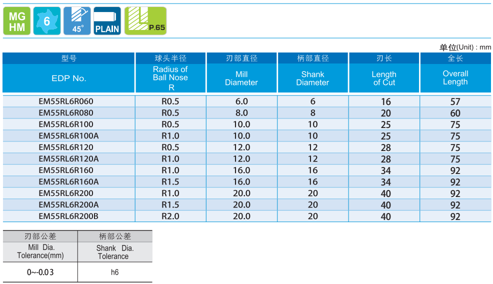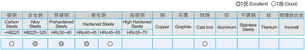 · 设计用于加工硬度高材料 · 高速切削且能以高进给率精铣 · 表面光洁度 · 高耐磨性 · 适于干式铣削