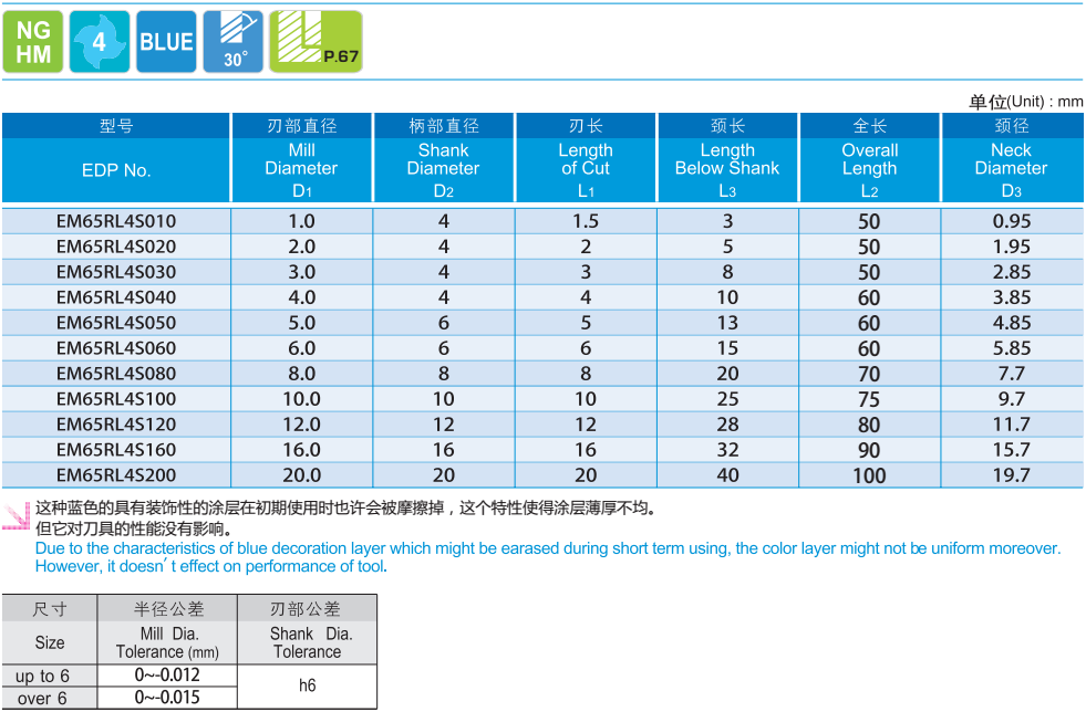· 为加工高硬度材料设计 · 适于干切削,高速切削,新开发的原材料和涂层 · 工件表面粗糙度 · 为高精度铣削设计 &nbs