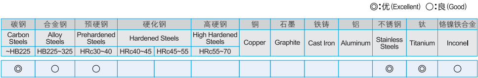 · 特殊的沟槽几何形状可以消除振动 · 设计用于加工低碳钢,不锈钢,铸铁,工具钢,钛合金,预硬钢和硬度在HRC40以下的低硬化钢 · 工件的表面粗糙度